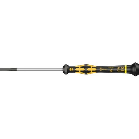 ESD-Elektronik-Schraubendreher für SchlitzAusführung: Mit runder, verchromter Klinge aus hochlegiertem Sonderstahl sowie Black Point-Spitze für mehr Drehmoment und Passgenauigkeit. Mit 2-Komponenten-Kraftform-Micro-Griff mit integrierten Weichzonen, Abrollschutz und drehbarer Kappe für blitzschnelles Zwirbeln. Mit Drei-Zonen-Konzept (Präzisions-, Kraft- und Schnelldrehzone) für ergonomisch bessere Handhabung.Anwendung: Für präzise, effiziente und zeitsparende Verschraubungsarbeiten geeignet. Ideal für feinfühlige Justierarbeiten, z. B. im Elektronikbereich, verwendbar und überall dort, wo ESD-fähige Schraubendreher gefordert sind.