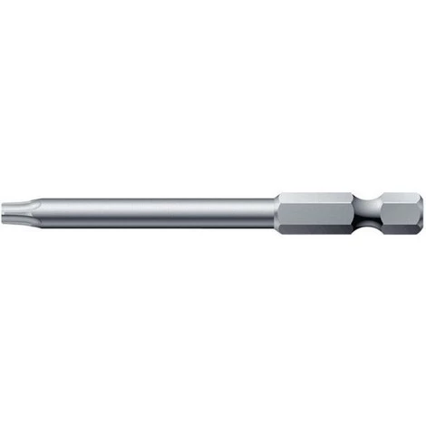 Embout pour vis femelle TORX® 1/4 », avec goupille de sécurité, 89 mm Dimensions : T 25 – Semi-dur – DIN 3126-E 6,3, ISO 1173 – Pointe d’embout avec alésage – Pour le vissage dans le métal et la tôle
