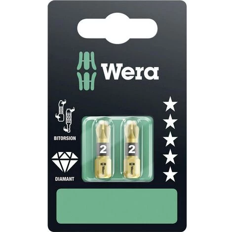 - BDC-embouts embouts Premium absolue. Les raccords en cas de pics de charge se présentant sous la forme d’fatigant veillent souvent pour l’usure prématurée de l’embout ou pour la destruction de la vis.ces pics de charge est réduite, le vissage plus productif et plus sûr. Un Wera Embout BiTorsion prévient les ruptures prématurés l’usure. La durée de vie de l’outil est prolongée et la productivité augmente de manière significative lors du vissage fatigant. Les pointes de charge plus importante grâce à l’effet de torsion de la Bit-Schaftes absorbé. Cet effet est possible grâce à un traitement thermique spécial ciblé après le processus dure de l’embout. Ainsi la dureté de l’rentrée réduit par rapport à la pointe d’entraînement.