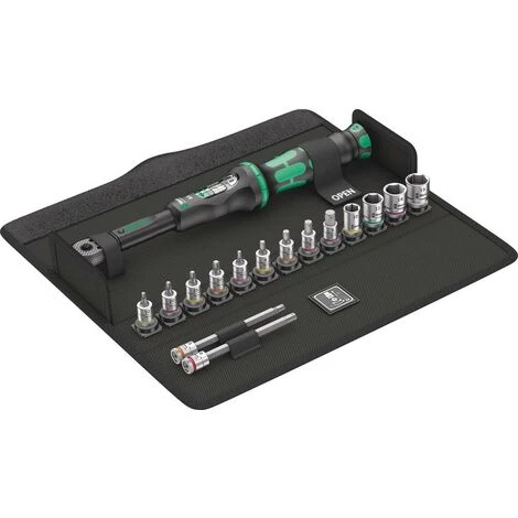 Le set « Bicycle Set Torque 1 » de Wera est composé de 16 outils qui permettent de réaliser les vissages les plus courants sur les vélos avec un couple contrôlé, protégeant ainsi les pièces fragiles. Clé dynamométrique à déclenchement au design Wera. Modèle robuste et précis conforme à DIN EN ISO 6789-1:2017-07. Réglage et verrouillage simple du couple. Le « cliquetis » audible et perceptible à chaque graduation permet un réglage précis du couple. Le mécanisme de déclenchement émet un « clic », parfaitement audible et perceptible, dès que l’on atteint le couple préréglé. Pour serrage à droite et avec cliquet réversible à 45 dents. La clé dynamométrique et ses accessoires sont parfaitement rangés dans une boite textile pour prendre un minimum de place. Elle est livrée avec un jeu d’accessoires permettant d’effectuer les vissages les plus courants sur les vélos. Contient : Click-Torque A 5, 1/4, 2,5 – 25 Nm, 4 douilles 1/4, 7 douille-embouts Hex-Plus et 4 douille-embouts TORX®. Douilles et douille-embouts « Take it easy » pour trouver rapidement et simplement le bon outil grâce à la couleur. Douille-embouts avec fonction de retenue pour plus de confort lors du vissage. Agencement incroyablement compact, permettant de ranger un grand nombre d’outils dans un espace réduit. Trousse textile très robuste qui assure la longévité du produit et protège les surfaces fragilles. Faible encombrement et poids réduit, pour un gain de mobilité. Douille-embouts de technologie Wera assurant une grande précision, une parfaite résistance à l’usure et un minimum de faux-rond.