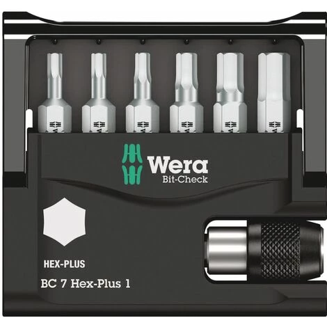 WERA 8040-6 Hex-Plus Bit-Check Set Bit contrôle bit robuste de Wera. contrôles de bits fournissent un aperçu rapide des outils existants. Non bits nécessaires sont simplement replacés dans plage et ne sont pas perdus. Facile transporter, par exemple dans une poche de chemise. Le profil de Hex-Plus fournit de plus grandes surfaces de contact de la t?te de vis. L’effet de premier ordre est réduit au minimum. la destruction de la t?te de vis pratiquement éliminé. Dur dur. pour une utilisation universelle. Y compris support universel pour la tenue de morceaux avec 1/4 -Außensechskantantrieb selon DIN ISO 1173-C 6.3. Avec mandrin serrage rapide changement pour le changement peu rapide. L’aimant permanent puissant conserve la bombe l’épreuve bits. Nombre de pi?ces: 7 St