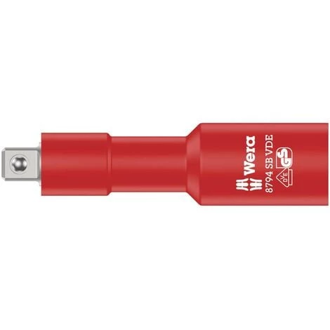 Rallonge VDE 3/8“ à sécurité renforcée par son isolant jaune à l’intérieur, qui permet un repérage simple d’un éventuel dommage sur l’isolant VDE rouge à l’extérieur. Le contrôle unitaire des outils sous 10.000 Volt conformément à la norme IEC 60900 garantit la sécurité jusqu’à 1.000 Volt.