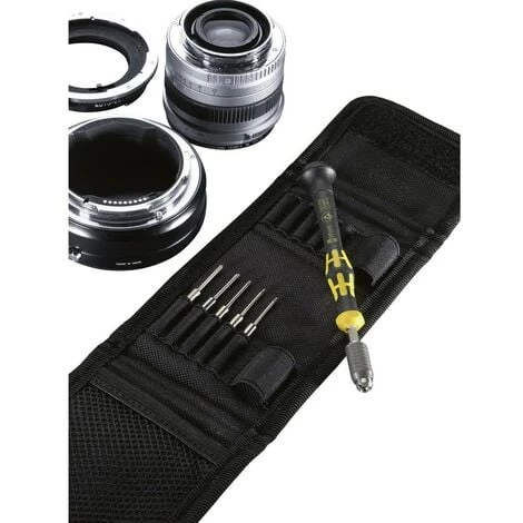 - 10 embouts (à emmanchement halfmoon 4mm) : fente 0,23 x 1,5/0,40 x 2,0/0,50 x 3,0 mm , Six pans SW1,5/2 mm , Cruciforme : PH00/PH 0/PH1 , Torx T5/T6