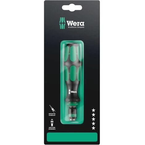 WERA R 817 bits de support SB main avec mandrin serrage rapide changement Rapidaptor Porte-main bits de haute qualité. La lame ba?onnette poignée rétractable avec mandrin serrage rapide changement permet un fonctionnement manuel rapide dans des situations de travail exigus. Le mandrin de changement rapide Rapidaptor permet des changements de bits rapides sans outils. L’aimant permanent puissant conserve la bombe l’épreuve bits. Kraftform Plus poignée pour le travail confortable et ergonomique. sont évités dans les ampoules et les callosités. zones de préhension dure pour la grande vitesse. garantie alors que les zones de soft grip transmission de couple élevée. Convient aux bits de 1/4 -Außensechskantantrieb selon la norme DIN ISO 1173-C et E 6,3 6,3 (ISO 1173). Longueur: 133 mm