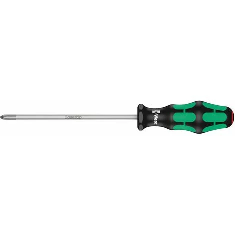 WERA tournevis 350 PH pour vis cruciformes De haute qualité Kraftform tournevis Plus. Kraftform multi-composants plus poignée pour travail confortable et ergonomique. sont évités dans les ampoules et les callosités. zones de préhension dure pour la grande vitesse. garantie alors que les zones de soft grip transmission de couple élevée. La pointe de Lasertip de Wera est microscopiquement rugueuse avec des faisceaux laser. Cette surface rugueuse piqûres » formalisée dans la tête de vis. Le glissement involontaire en est une chose du passé. Le Sechskantabrollschutz évite de roulement gênant loin du lieu de travail. Avec poignée pour trouver d’identification plus facile et le tri de l’outil. Taille Astuce PH 2