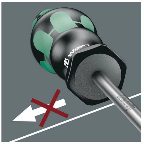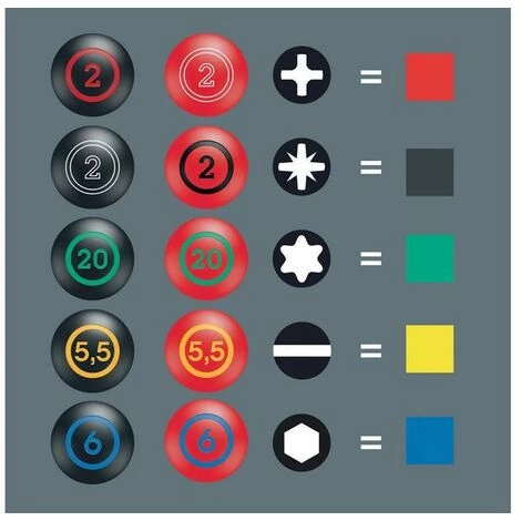 avec poignée à 2 composants · lame en acier molybdène-vanadium nicromatt avec pointe Black Point et tête sphérique · (permet un vissage jusqu’à un angle de 20°) · système de contrôle de taille · Take it easy Tool Finder System
